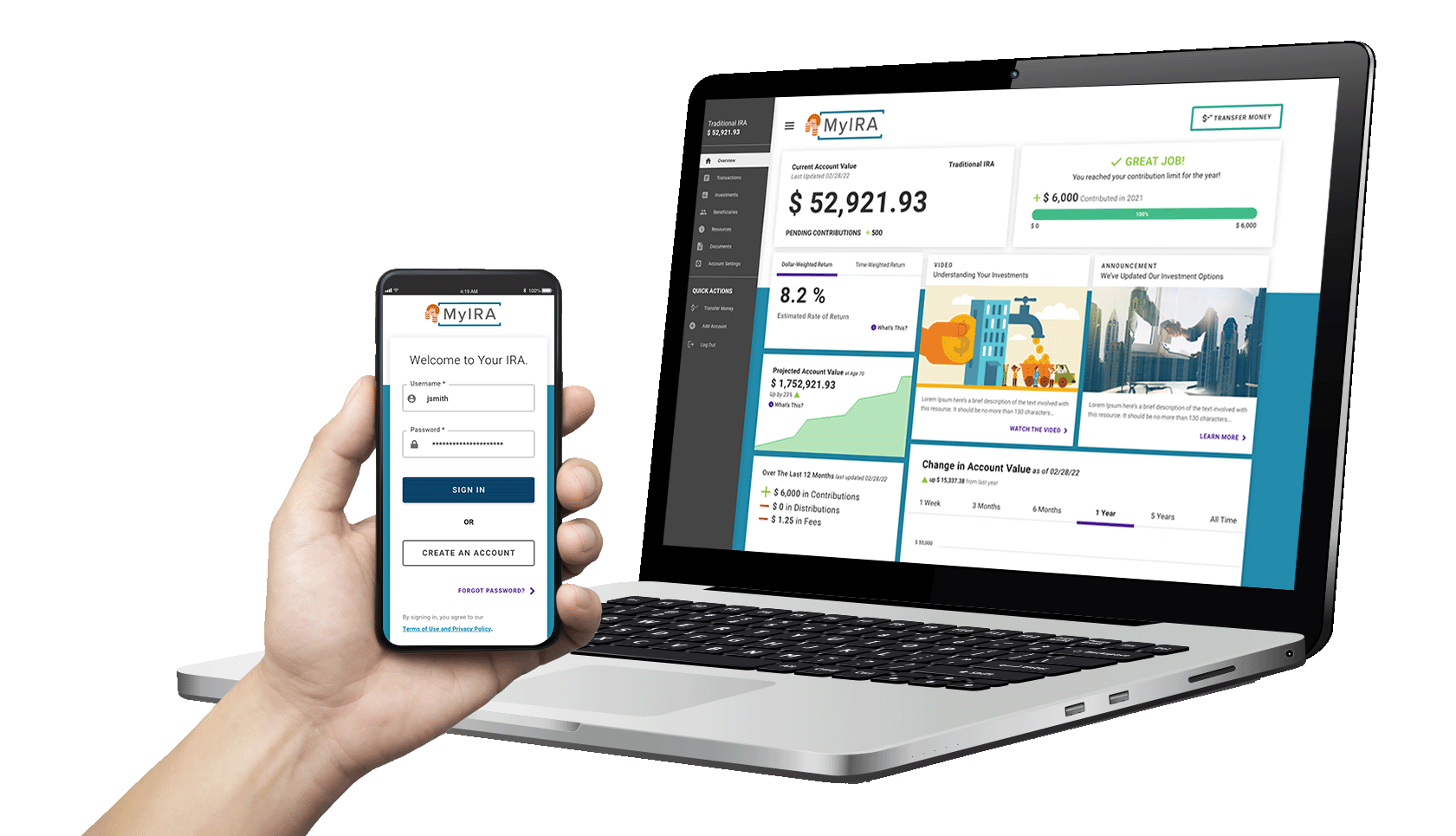 Portfolio IRA Account Portal IRA Staff Portal Employer IRA Enrollment Service Design for Onboarding AI Financial Advisor Trans Resource Database B2B Dashboard
